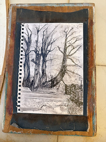 Painted with pens and ink, Exmoor’s landscape. Finished with old masters style glazing technique, brush and squeegee. Playing with different techniques in sketchbook to see what works for a bigger painting on canvas.